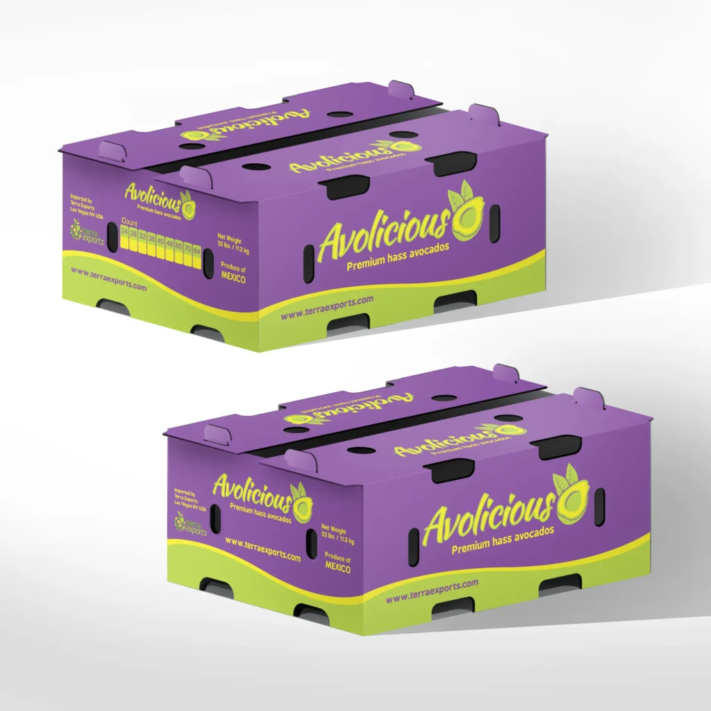 High-quality graphics enhance shelf appeal and communicate origin (e.g., “Hass Avocados – Product of Mexico”). Strong branding increases consumer trust.